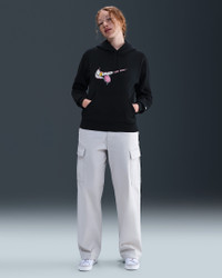 Made with brushed fleece, this boxy hoodie gives you a draped look and lets you move with ease. And in case you need extra storage, there's a hidden pocket inside the kangaroo pocket. Benefits - Dropped shoulders and a roomy feel through the chest and body make a good fit for movement. - A boxy shape prevents bunching at the hips. - Embroidered graphic on front adds a premium and elevated feel. Product Details - 82% cotton/18% polyester - Ribbed cuffs and hem - Embroidered Nike SB logo - Loose fit - Braided drawcord - Machine wash - Imported - Shown: Black/White - Style: HV0249-010 SIZE & FIT Female model is wearing size M and is 5'10"178cm Male model is wearing size M and is 5'11"180cm Loose fit: roomy and relaxed