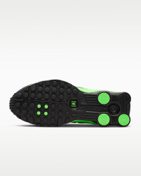 A recrafted version of the 2001 icon, the Nike Shox R4 replicates the original with its synthetic and textile upper, design lines and laser perforations. Nike Shox cushioning distributes weight to maximize comfort and provide a performance-inspired look. Benefits - Originally designed to support the stride of runners, Nike Shox columns provide responsive cushioning. - Upper is a near-exact replica of the original 2001 Nike Shox. - Modified, circular waffle outsole gives traction. - Laser perforations throughout provide ventilation. Product Details - Not intended for use as Personal Protective Equipment (PPE) - Shown: Black/Black/Voltage Green - Style: AR3565-013