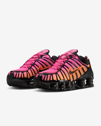 The 2003 icon returns in a gradient colorway and signature style. The classic overlays and full-length cushioning columns are sure to turn heads once again. Benefits - Nylon mesh upper creates a breathable feel. - Nike Shox columns provide resilient cushioning. - Molded overlays wrap the midfoot for a snug fit. - Sturdy plate in the heel, between the midsole and the Nike Shox cushioning, helps provide lateral stability and support. Product Details - Foam midsole - Rubber outsole - Not intended for use as Personal Protective Equipment (PPE) - Shown: Pinksicle/Metallic Black/Total Orange - Style: IH1336-601