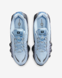 The Nike Shox TL takes mechanical cushioning to the next level. A recrafted version of the 2003 icon, it features breathable mesh in the upper and full-length Nike Shox technology for optimal impact absorption and a bold look on the streets. Benefits - Nike Shox technology combines resilient, flexible columns with moderator plates for outstanding cushioning that compresses and regains its shape. - Combination upper with full TPU cage is near-exact replica of the 2003 Nike Shox TL. - Molded overlays throughout midfoot provide support and snug fit. - TPU plate in heel between midsole and Nike Shox technology helps provide lateral stability and support. Product Details - Foam midsole - Rubber outsole - Shown: Anthracite/Light Armory Blue/Metallic Silver - Style: IO1912-060