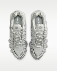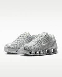 The Nike Shox TL takes mechanical cushioning to the next level. A recrafted version of the 2003 icon, it features breathable mesh in the upper and full-length Nike Shox technology for optimal impact absorption and a bold look on the streets. Benefits - Nike Shox technology combines resilient, flexible columns with moderator plates for outstanding cushioning that compresses and regains its shape. - Combination upper with full TPU cage is near-exact replica of the 2003 Nike Shox TL. - Molded overlays throughout midfoot provide support and snug fit. - TPU plate in heel between midsole and Nike Shox technology helps provide lateral stability and support. Product Details - Foam midsole - Rubber outsole - Not intended for use as Personal Protective Equipment (PPE) - Shown: Photon Dust/Metallic Silver/Photon Dust - Style: IB1087-002