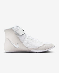 When the opportunity presents itself, make your move in the Nike Speedsweep 8. Its breathability and support are built to give you confidence long into the third period. The above-the-ankle collar helps form to your foot, while the one-piece outsole helps you move freely. Benefits - Open-hole mesh adds breathability. - Suede provides support. - Adjustable strap helps secure your foot. - Rubber outsole gives you traction for quick moves on the mat. - This model comes with traditional laces, but you can hide them beneath the ankle strap. Product Details - Shown: White/White/Photon Dust/Black - Style: HF9132-100