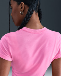 Classic and simple. This smooth jersey tee offers both comfort and versatility. Product Details - 48% modal/46% cotton/6% spandex - Embroidered Swoosh logo on chest - Machine wash - Imported - Shown: Playful Pink - Style: HF9538-676 SIZE & FIT Model is wearing size S and is 5′10″178cm Sm fit: sleek and tailored