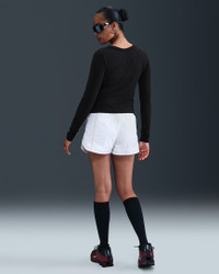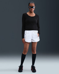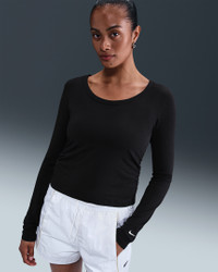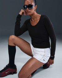 Ruched sides elevate this simple top. It's made with smooth jersey fabric that's stretchy with a slight drape, making it perfect for everyday wear. Product Details - 48% modal/46% cotton/6% spandex - Swoosh logo at center chest - Machine wash - Imported - Shown: Black/Sail - Style: HV2399-010 SIZE & FIT Model is wearing size S and is 5′8″173cm Tight fit: snug and form-fitting