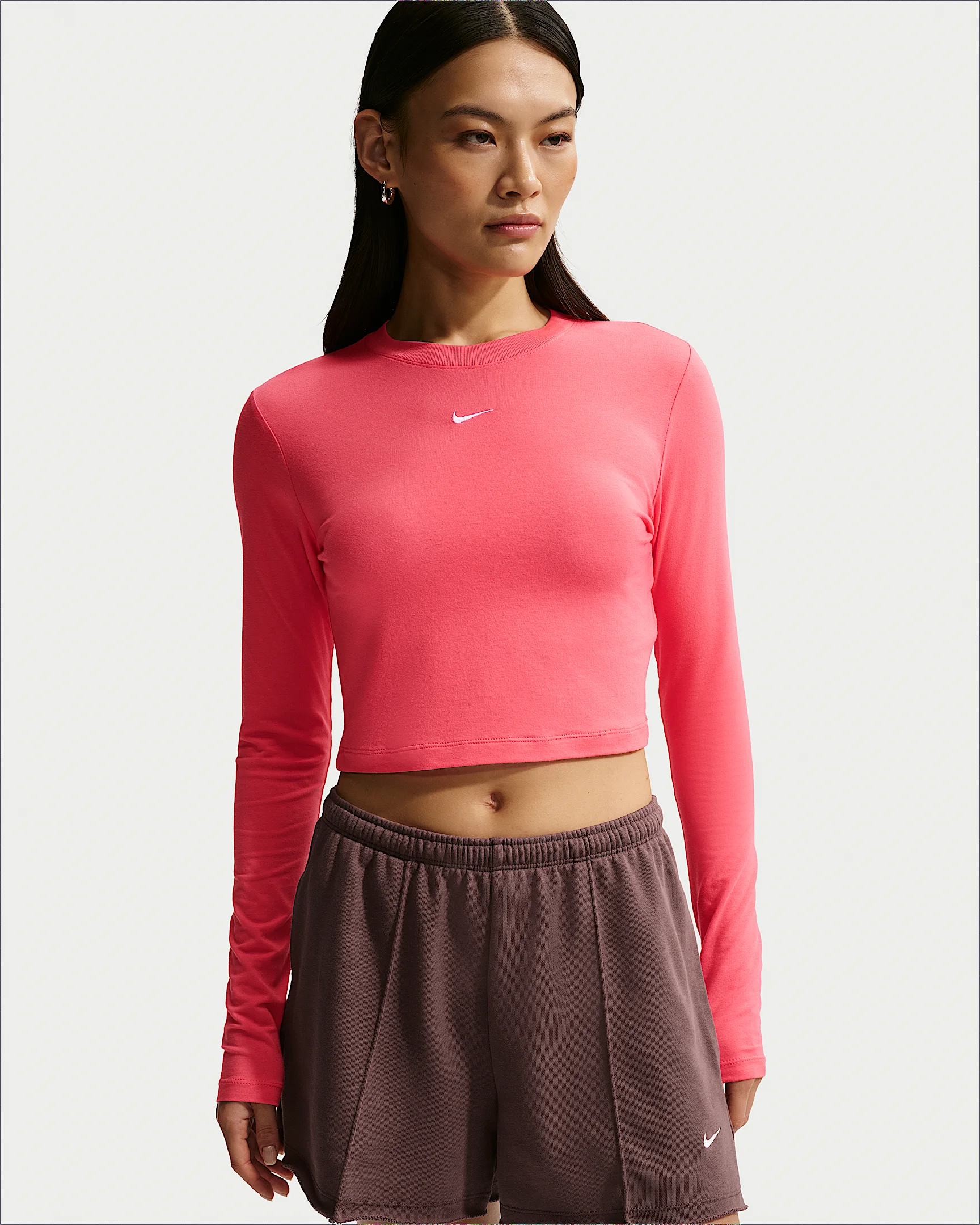 Slightly cropped and snug, this top is ready for you to style it your way. Our smooth jersey is stretchy with a slight drape, making it perfect for everyday wear. Product Details - 48% modal/46% cotton/6% spandex - Embroidered Swoosh logo - Machine wash - Imported - Shown: Sea Coral/White - Style: HF5322-897 SIZE & FIT Model is wearing size S and is 5′7″170cm Sm fit: sleek and tailored