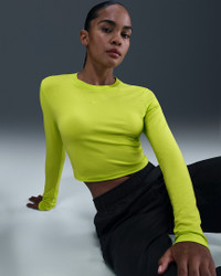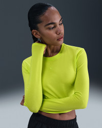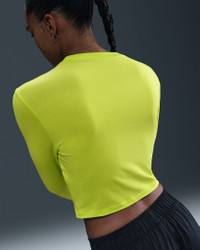 Slightly cropped and snug, this top is ready for you to style it your way. Our smooth jersey is stretchy with a slight drape, making it perfect for everyday wear. Product Details - 48% modal/46% cotton/6% spandex - Embroidered Swoosh logo - Machine wash - Imported - Shown: Cyber - Style: HF5322-389 SIZE & FIT Model is wearing size S and is 5′11″179cm Sm fit: sleek and tailored