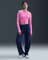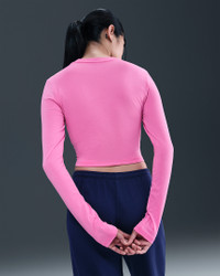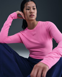 Slightly cropped and snug, this top is ready for you to style it your way. Our smooth jersey is stretchy with a slight drape, making it perfect for everyday wear. Product Details - 48% modal/46% cotton/6% spandex - Embroidered Swoosh logo - Machine wash - Imported - Shown: Playful Pink - Style: HF5322-675 SIZE & FIT Sm fit: sleek and tailored