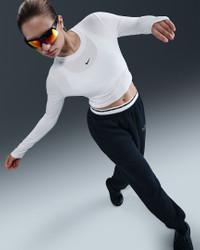 Slightly cropped and snug, this top is ready for you to style it your way. Our smooth jersey is stretchy with a slight drape, making it perfect for everyday wear. Product Details - 48% modal/46% cotton/6% spandex - Embroidered Swoosh logo - Machine wash - Imported - Shown: White/Black - Style: HF5322-102 SIZE & FIT Model is wearing size S and is 5′10″178cm Sm fit: sleek and tailored