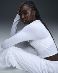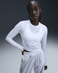 Slightly cropped and snug, this top is ready for you to style it your way. Our smooth jersey is stretchy with a slight drape, making it perfect for everyday wear. Product Details - 48% modal/46% cotton/6% spandex - Embroidered Swoosh logo - Machine wash - Imported - Shown: White/White - Style: HF5322-100 SIZE & FIT Model is wearing size S and is 5′9″175cm Sm fit: sleek and tailored