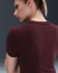 Perfect for any day, this slightly cropped, slim-fitting tee is classic and versatile. Our smooth jersey feels stretchy with a slight drape, giving it a comfortable, body-skimming feel. Product Details - 48% modal/46% cotton/6% spandex - Machine wash - Imported - Shown: Burgundy Crush - Style: FV5508-652 SIZE & FIT Model is wearing size S and is 5′10″178cm Sm fit: sleek and tailored