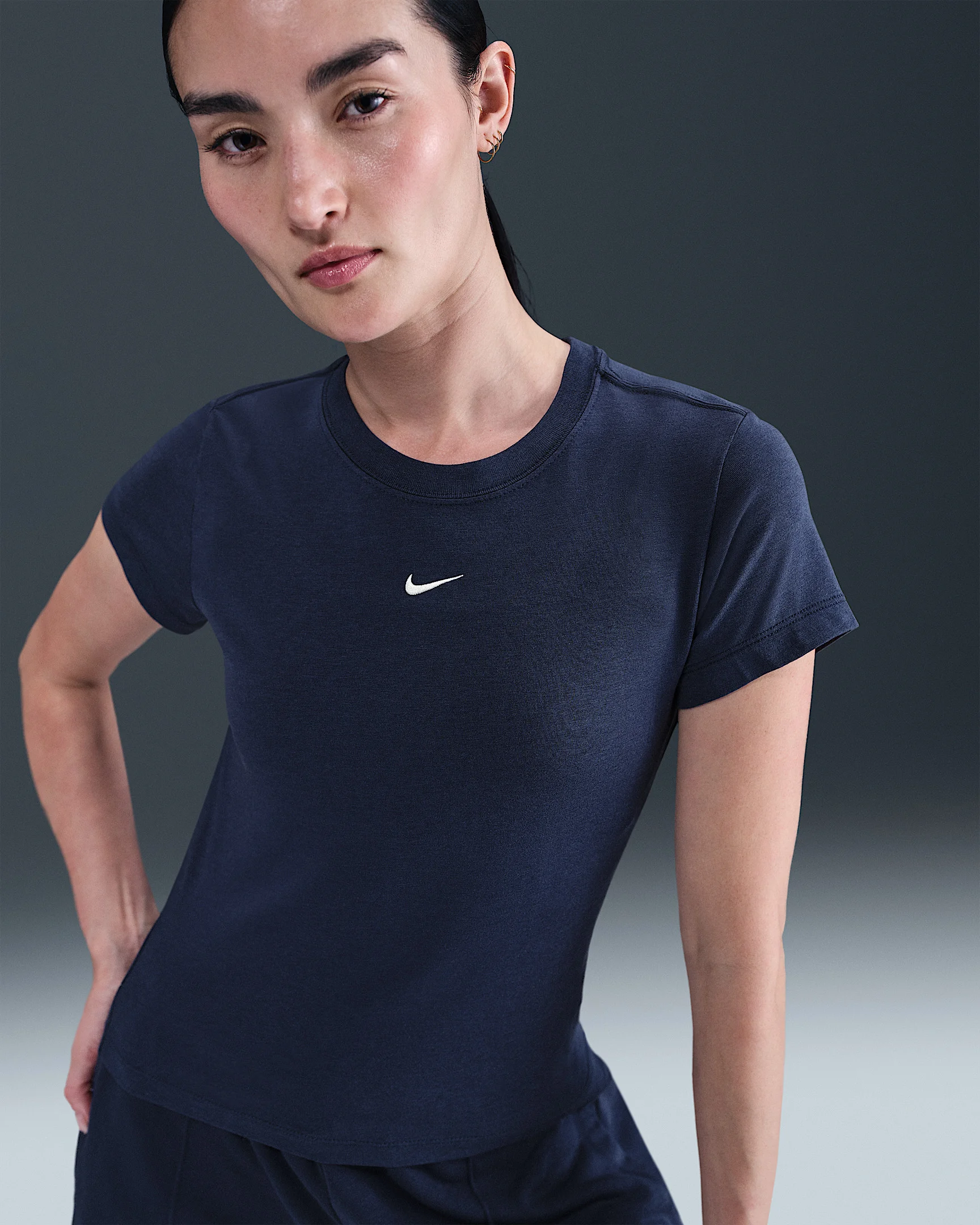 Perfect for any day, this slightly cropped, slim-fitting tee is classic and versatile. Our smooth jersey feels stretchy with a slight drape, giving it a comfortable, body-skimming feel. Product Details - 48% modal/46% cotton/6% spandex - Machine wash - Imported - Shown: Midnight Navy/Sail - Style: FV5508-410 SIZE & FIT Model is wearing size S and is 5′7″170cm Sm fit: sleek and tailored