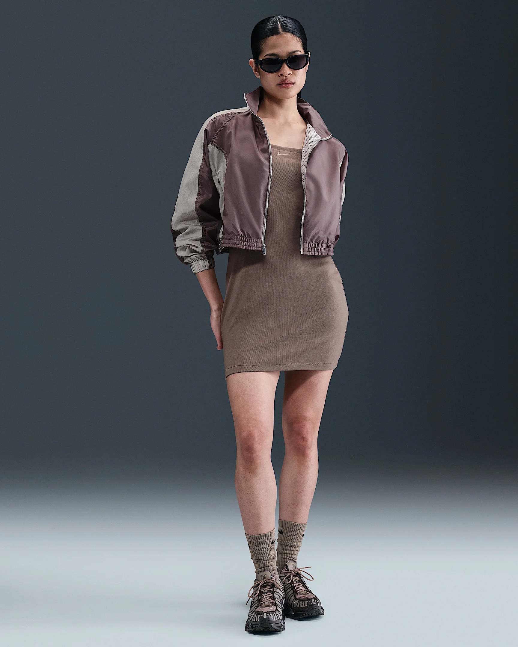 Grounded in style, comfort and versatility, meet our take on luxury loungewear. Our soft mini-ribbed jersey is stretchy with a slight drape, making it perfect for everyday wear. With thin straps and a square neckline, this fitted mini dress is casually chic. Product Details - 61% polyester/31% lyocell/8% spandex. - Center back seam - Embroidered Swoosh logo - Machine wash - Imported - Shown: Mink Brown/Mink Brown - Style: FN4157-214 SIZE & FIT Model is wearing size S and is 5′10″178cm Tight fit: snug and form-fitting