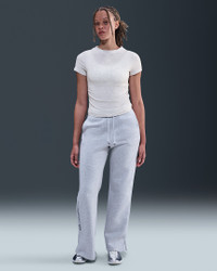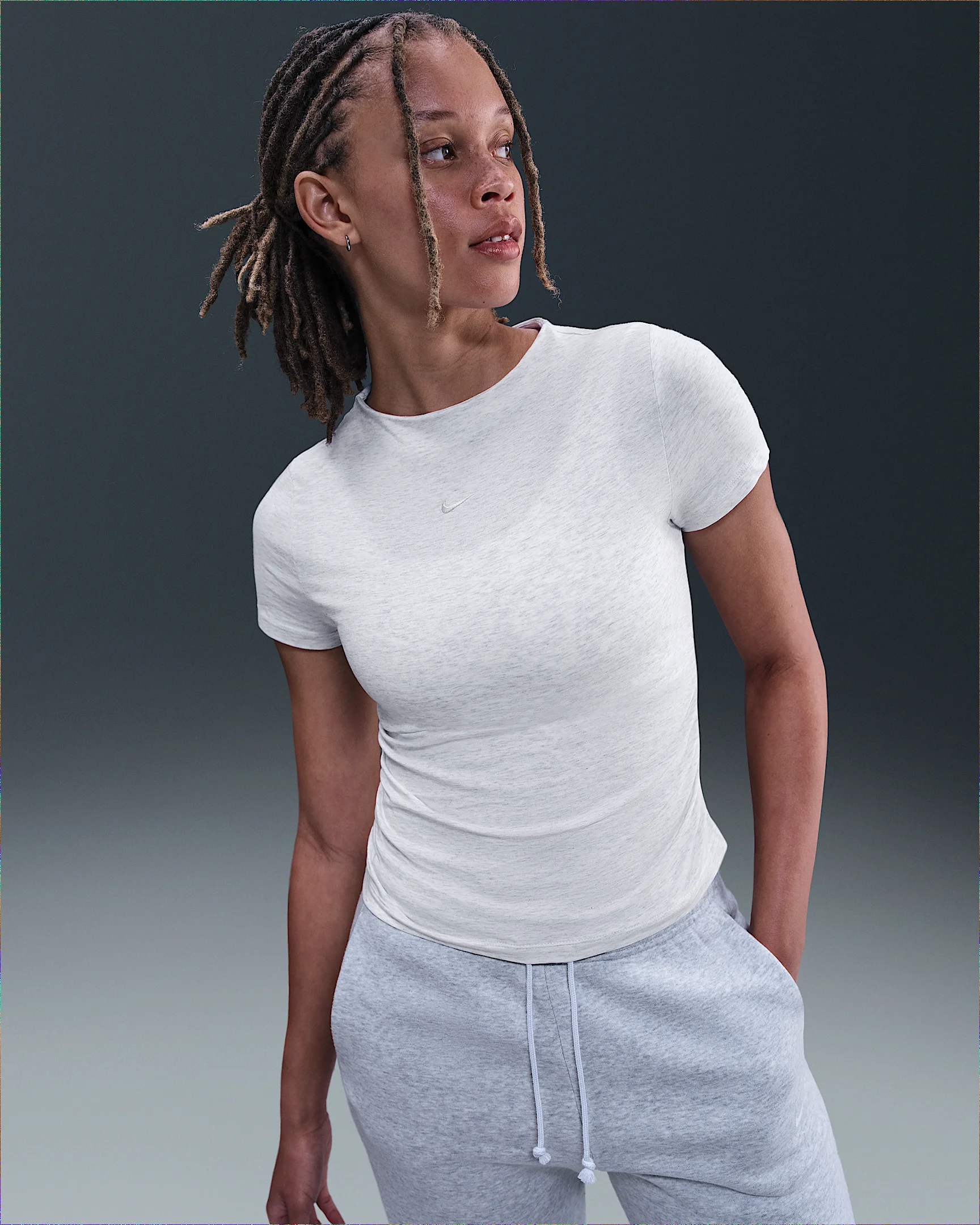 Ruched sides elevate this mock-neck top. It's made with smooth jersey fabric that's stretchy with a slight drape, making it perfect for everyday wear. Product Details - 48% modal/46% cotton/6% spandex - Embroidered Swoosh logo at center chest - Machine wash - Imported - Shown: Birch Heather/Light Orewood Brown - Style: HV2401-051 SIZE & FIT Model is wearing size S and is 5′9″175cm Tight fit: snug and form-fitting