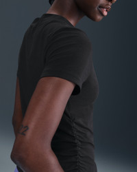 Ruched sides elevate this mock-neck top. It's made with smooth jersey fabric that's stretchy with a slight drape, making it perfect for everyday wear. Product Details - 48% modal/46% cotton/6% spandex - Embroidered Swoosh logo at center chest - Machine wash - Imported - Shown: Black/Sail - Style: HV2401-010 SIZE & FIT Model is wearing size S and is 5′9″175cm Tight fit: snug and form-fitting