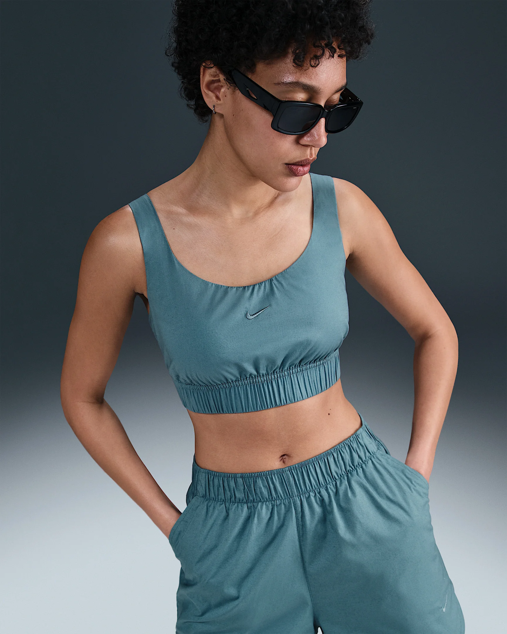 Made with lightweight poplin, this cropped tank has a crisp, breezy feel. Ruching in the back adds dimension and texture. Product Details - Body/lining: 95% cotton/5% spandex - Fully lined - Embroidered Swoosh logo at center chest - Machine wash - Imported - Shown: Smokey Blue/Smokey Blue - Style: HM6973-006 SIZE & FIT Model is wearing size S and is 5′10″178cm Sm fit: sleek and tailored