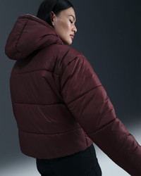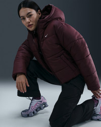 Take on the winter chill in a jacket designed to add some warmth to your life. Loose enough to layer, its synthetic fill adds insulation while Nike Therma-FIT technology helps manage your body’s natural heat to help keep you warm in cold-weather conditions. On top of that, a water-repellent finish helps keep you dry. So zip it up, throw your hands in the pockets and get out there! More Benefits - Style: Hip-length, loose-fit jacket - Materials: Water-repellent fabric - Construction: Synthetic insulation - Storage: Zippered hand pockets - Trim: Zipper and elastic hem - Other Features: Hood with foldable storm bill and bungee toggles Product Details - Body/Lining/Fill: 100% polyester - Embroidered Swoosh logo - Machine wash - Imported - Shown: Burgundy Crush/White - Style: FZ5899-652 SIZE & FIT Model is wearing size S and is 5′7″170cm Loose fit: roomy and relaxed