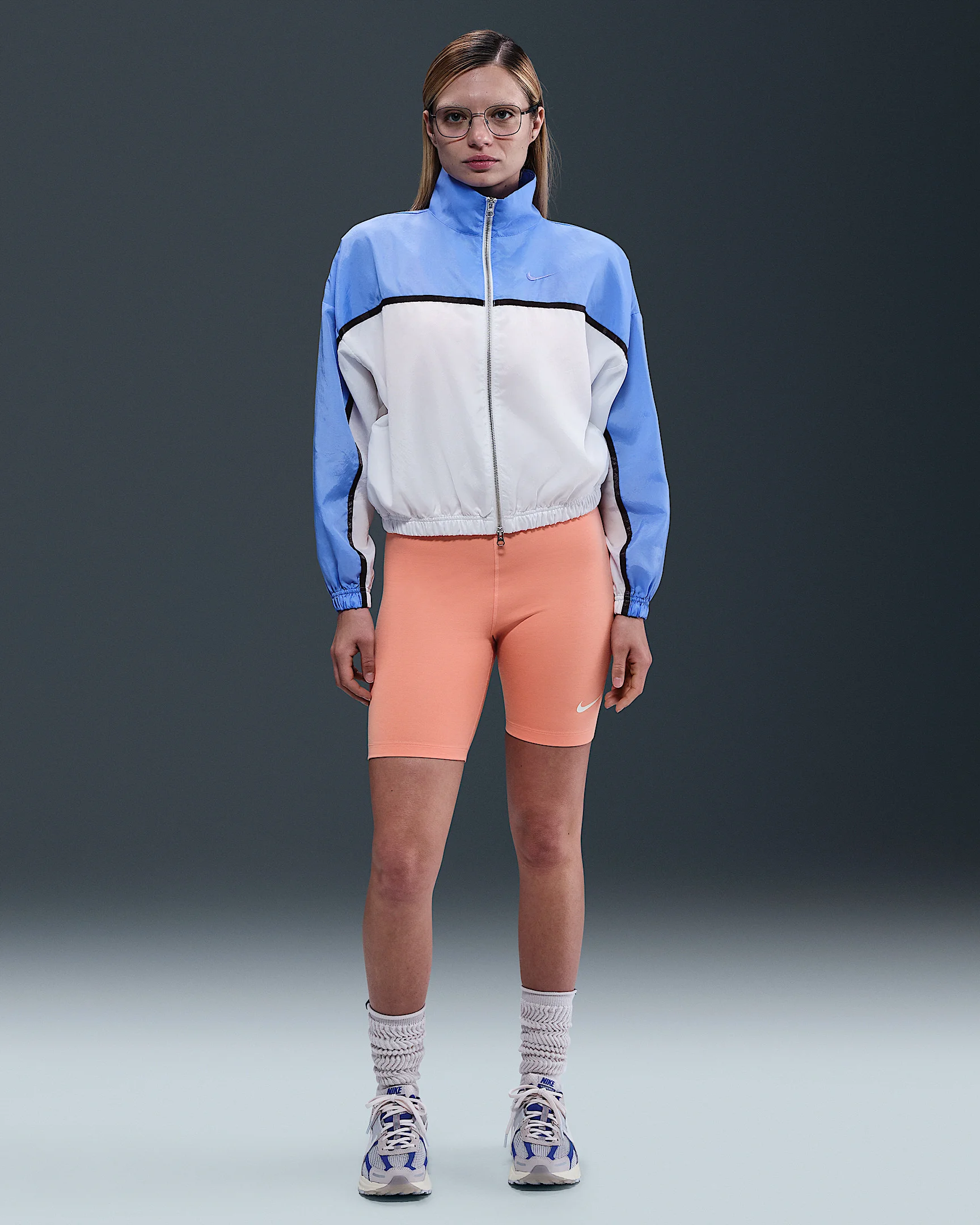 We've revamped this closet staple to be more durable and less sheer than previous versions. Designed to support you from one task to the next, our Classic lifestyle shorts are made from stretchy fabric that feels thick but still lightweight and peachy-soft but still strong. Endlessly comfortable, you'll want to wear these 24/7. Product Details - 47% cotton/ 41% polyester/ 12% spandex - High-rise waistband - 8” inseam - Printed Swoosh logo - Machine wash - Imported - Shown: Apricot Agate/Sail - Style: DV7797-844 SIZE & FIT Model is wearing size S and is 5′10″178cm Tight fit: snug and form-fitting Fits small; we recommend ordering a size up