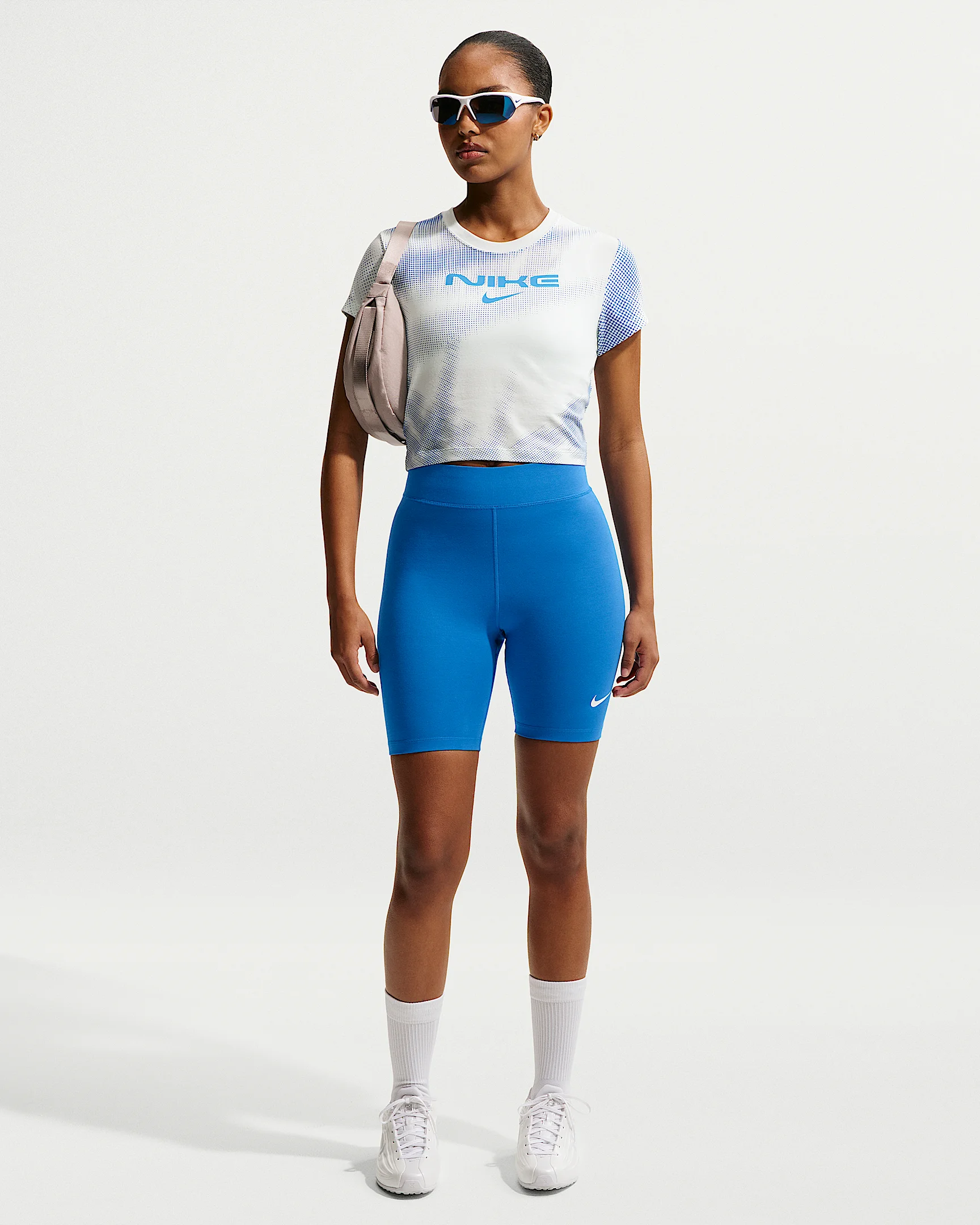 We've revamped this closet staple to be more durable and less sheer than previous versions. Designed to support you from one task to the next, our Classic lifestyle shorts are made from stretchy fabric that feels thick but still lightweight and peachy-soft but still strong. Endlessly comfortable, you'll want to wear these 24/7. Product Details - 47% cotton/ 41% polyester/ 12% spandex - High-rise waistband - 8” inseam - Printed Swoosh logo - Machine wash - Imported - Shown: Light Photo Blue/Sail - Style: DV7797-435 SIZE & FIT Model is wearing size S and is 5′9″175cm Tight fit: snug and form-fitting Fits small; we recommend ordering a size up