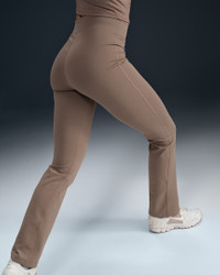 Thick but still lightweight, peachy-soft but still strong, these bootcut pants stretch with your every move for casual comfort. Benefits - Encased elastic waistband feels comfortably snug. - Lightweight fabric moves sweat away from your skin for quick evaporation, helping you stay dry and comfortable. Product Details - 47% cotton/41% polyester/12% spandex - Printed Swoosh logo on left hip - Machine wash - Imported - Shown: Mink Brown/Sail - Style: HJ1011-233 SIZE & FIT Model is wearing size S and is 5′10″178cm Tight fit: snug and form-fitting Fl length: hits below ankle