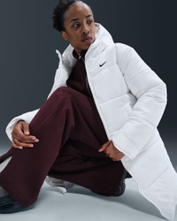 Designed for comfort, this parka uses Nike Therma-FIT technology to help keep you warm in cold-weather conditions. A 2-way zipper gives you extra versatility and the elongated collar adds more coverage from the cold. More Benefits - Style: Warm, full-length parka with loose fit - Materials: Water-repellent polyester and down-alternative fill - Construction: Synthetic insulation and baffles - Storage: Hand pockets and welt pocket - Trim: Zipper closure and hood Product Details - Body/Lining/Fill: 100% polyester - Pockets - Embroidered Swoosh logo - Embroidered Therma-FIT logo - Machine wash - Imported - Shown: White/Black - Style: HV4912-100 SIZE & FIT Model is wearing size S and is 5′9″175cm Loose fit: roomy and relaxed