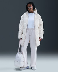 Designed for comfort, this parka uses Nike Therma-FIT technology to help keep you warm in cold-weather conditions. A 2-way zipper gives you extra versatility and the elongated collar adds more coverage from the cold. More Benefits - Style: Warm, full-length parka with loose fit - Materials: Water-repellent polyester and down-alternative fill - Construction: Synthetic insulation and baffles - Storage: Hand pockets and welt pocket - Trim: Zipper closure and hood Product Details - Body/Lining/Fill: 100% polyester - Pockets - Embroidered Swoosh logo - Embroidered Therma-FIT logo - Machine wash - Imported - Shown: Light Bone/White - Style: HV4912-072 SIZE & FIT Model is wearing size S and is 5′7″170cm Loose fit: roomy and relaxed