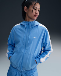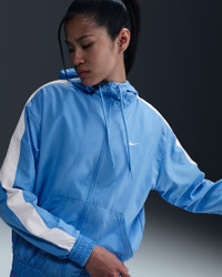 With a classic sport look and a lightweight feel, this jacket is ready for whatever the day throws at you. Dropped shoulders and an oversized fit gives you a casual feel that you can rock all day. Benefits - UV-resistant fabric helps protect you from the sun. - Pockets provide quick storage for keys, phone and cold hands. Product Details - Body: 100% polyester. Mesh: 100% polyester. - Embroidered Swoosh logo - This product provides UVA and UVB protection from the sun only in the areas covered by the garment. To protect exposed areas, the use of good quality sunscreen is recommended. - Machine wash - Imported - Shown: University Blue/White - Style: FV6298-412 SIZE & FIT Model is wearing size S and is 5′10″178cm Loose fit: roomy and relaxed