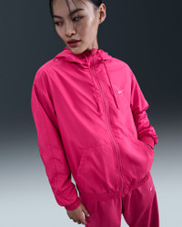 With a classic sport look and a lightweight feel, this jacket is ready for whatever the day throws at you. Dropped shoulders and an oversized fit gives you a casual feel that you can rock all day. Benefits - UV-resistant fabric helps protect you from the sun. - Pockets provide quick storage for keys, phone and cold hands. Product Details - Body: 100% polyester. Mesh: 100% polyester. - Embroidered Swoosh logo - This product provides UVA and UVB protection from the sun only in the areas covered by the garment. To protect exposed areas, the use of good quality sunscreen is recommended. - Machine wash - Imported - Shown: Rush Pink/Sail - Style: FV6298-666 SIZE & FIT Model is wearing size S and is 5′7″170cm Loose fit: roomy and relaxed
