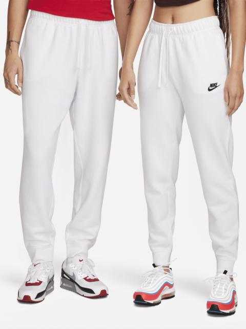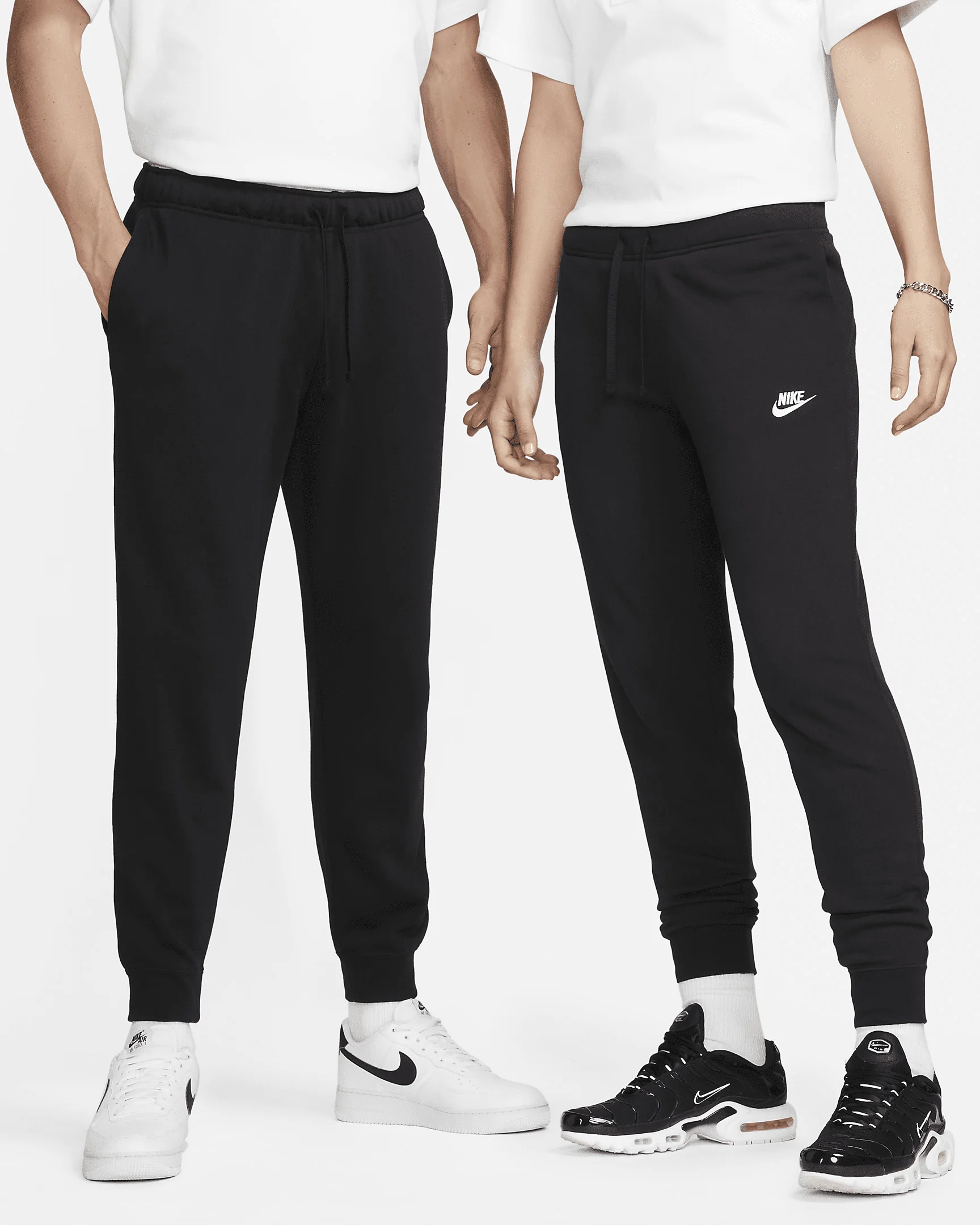 Club Fleece, universally loved for its coziness and consistency, is for everyone. These mid-rise Club Fleece pants have a soft, familiar feel that makes it easy to stay warm and comfortable. Benefits - Our best-selling fleece for a reason, Club Fleece has a cozy, familiar feel and consistent fit you can return to again and again. Brushed for added warmth and softness, it’s an ideal layer for colder temperatures. - Soft and stretchy, the ribbed cuffs help show off your shoes. - Pockets provide quick storage for keys, phone and cold hands. Product Details - 80% cotton/20% polyester - Flat drawcord and elastic waist - Embroidered Futura logo - Machine wash - Imported - Shown: Black/White - Style: DQ5191-010 SIZE & FIT Model 1 is wearing size S and is 5'11"180cm Model 2 is wearing size L and is 6'3"191cm Standard fit: easy and traditional Fl length: hits below ankle