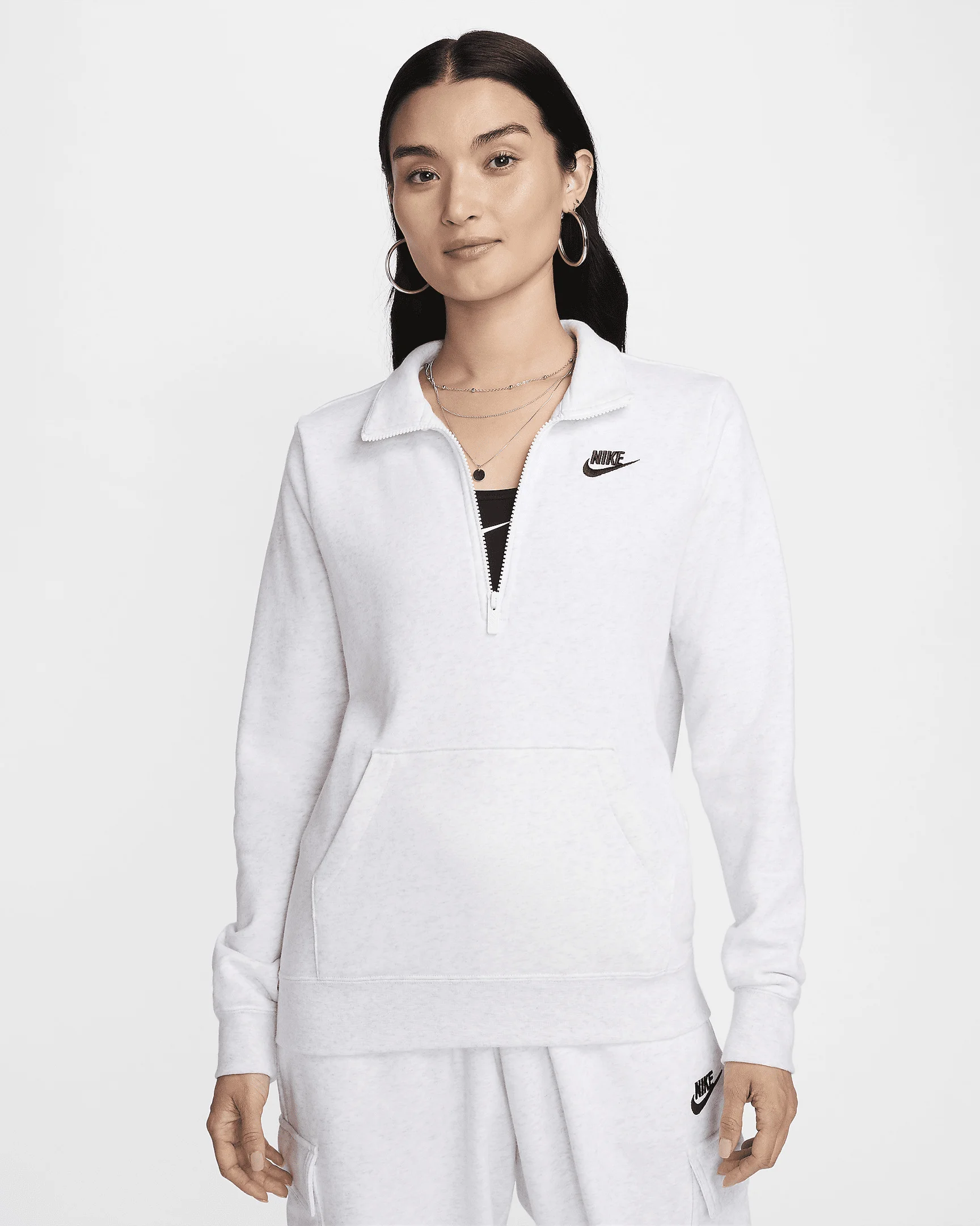 Club Fleece sweatshirts, universally loved for their coziness and consistency, are for everyone. Always soft and made with a relaxed fit, they’re basics that help you do more. The stand-up collar and 1/2-zip closure on this pullover provide styling options that help keep cold weather out. Benefits - Our best-selling fleece for a reason, Club Fleece has a cozy, familiar feel and consistent fit you can return to again and again. Brushed for added warmth and softness, it’s an ideal layer for colder temperatures. - Ribbing at the hem and cuffs is soft and stretchy for easy layering. Product Details - 80% cotton/20% polyester - Embroidered Futura logo - Front pocket - Machine wash - Imported - Shown: Birch Heather/Black - Style: DQ5838-051 SIZE & FIT Model is wearing size S and is 5′7″170cm Standard fit: easy and traditional