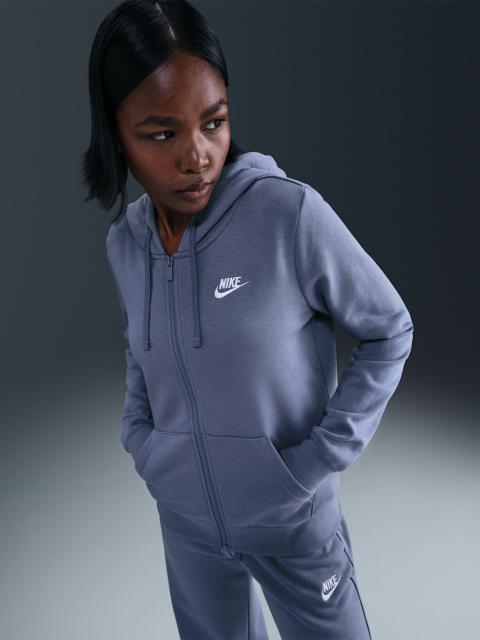 Club Fleece sweatshirts, universally loved for their coziness and consistency, are for everyone. Always soft and made with a relaxed fit, they’re basics that help you do more. This full-zip option allows you to regulate your temp on the fly. Zip it up when the wind is howling or leave it open to show off your favorite tees and tops. Benefits - Our best-selling fleece for a reason, Club Fleece has a cozy, familiar feel and consistent fit you can return to again and again. Brushed for added warmth and softness, it’s an ideal layer for colder temperatures. - Ribbing at the hem and cuffs is soft and stretchy for easy layering. - Jersey-lined 3-panel hood feels soft and smooth. Product Details - Body: 80% cotton/20% polyester. Hood Lining: 100% cotton. - Embroidered Futura logo - Flat drawcord - Front pocket - Machine wash - Imported - Shown: Rush Pink/White - Style: DQ5471-666 SIZE & FIT Model is wearing size S and is 5′7″170cm Standard fit: easy and traditional