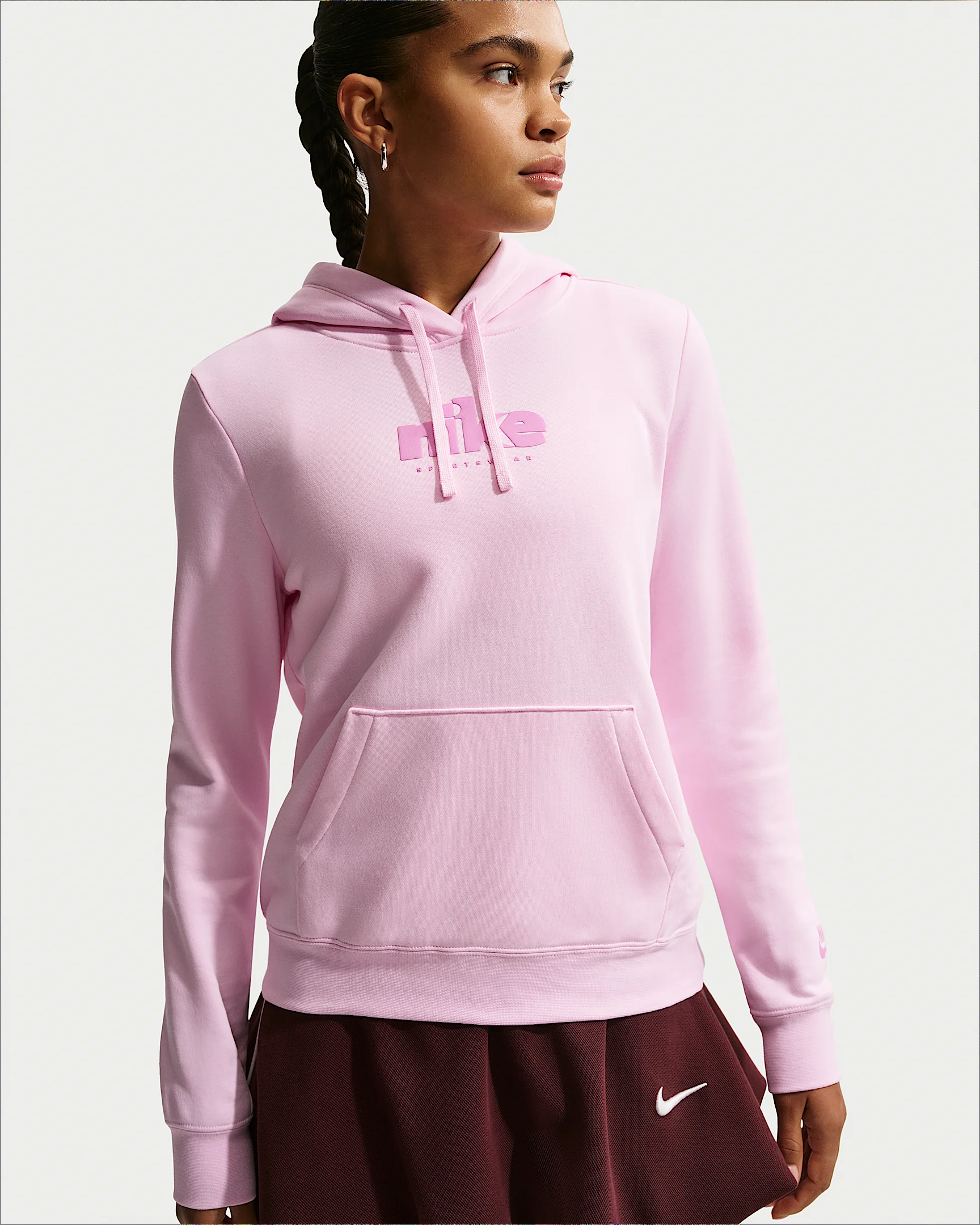 Meet the comfort of Club. This sweatshirt is made with midweight semi-brushed fleece that's slightly fuzzy on the inside and smooth on the outside. Its relaxed fit gives it a clean yet cozy look. Product Details - Hood with drawcord - Pouch pocket - Ribbed hem and cuffs - Body: 80% cotton/20% polyester. Hood lining: 100% cotton. - Machine wash - Imported - Shown: Pink Foam/Light Magenta - Style: IF0226-663 SIZE & FIT Model is wearing size S and is 5′11″179cm Standard fit: easy and traditional