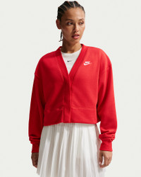 Meet the comfort of Club. This cardigan is made with midweight semi-brushed fleece that's slightly fuzzy on the inside and smooth on the outside. It's roomy through the body for a cozy fit while hidden snaps offer a clean finish. Product Details - Embroidered logo - Ribbed openings - Body: 80% cotton/20% polyester. Rib: 97% cotton/3% spandex. - Machine wash - Imported - Shown: University Red/White - Style: IF5455-657 SIZE & FIT Model is wearing size S and is 5′10″178cm Loose fit: roomy and relaxed