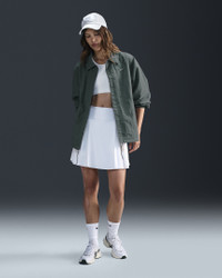 With both a water-repellent finish and built-in UV protection, this oversized jacket is ready come rain or shine. Its lightweight woven fabric is lined with sweat-wicking mesh to help keep you cool and dry. Benefits - Full-length snaps and bungee at hem let you customize your look. - Pockets provide quick storage for keys, phone and cold hands. Product Details - Body: 100% nylon. Mesh: 100% polyester. - Embroidered Swoosh logo on left chest - This product provides UVA and UVB protection from the sun only in the areas covered by the garment. To protect exposed areas, the use of good quality sunscreen is recommended. - Machine wash - Imported - Shown: Vintage Green/Sail - Style: FV7560-338