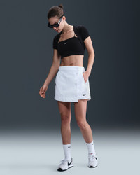 Style meets function in this skort. It's made with structured water-repellent nylon for texture and dimension come rain or shine. Product Details - 100% nylon - Embroidered Swoosh logo at left hem - This product provides UVA and UVB protection from the sun only in the areas covered by the garment. To protect exposed areas, the use of good quality sunscreen is recommended. - Machine wash - Imported - Shown: White/Black - Style: HM6979-100 SIZE & FIT Model is wearing size S and is 5′10″178cm Standard fit: easy and traditional