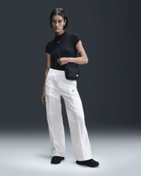 Simplicity meets functionality. These crisp, crinkled pants have everything you need for all-day wear: water-repellent fabric, multiple pockets and an adjustable design. A bungee toggle at the hem means you can tighten it for a jogger-like fit or keep it open for a relaxed look. You've got stylish options—rain or shine. Benefits - Bungee toggles let you easily adjust your fit. - Center-front pin tuck creates a tailored look. - Matte nylon fabric is light and durable with a crinkled look. - Water-repellent finish helps keep you dry in light rain. - Discreet pockets at the sides and back right store all your odds and ends. Product Details - Embroidered Swoosh logo - Elastic waistband - 100% nylon - Machine wash - Imported - Shown: White/Black - Style: FQ3588-100