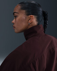 Simplicity and functionality come together in this lightweight jacket. Textured, water-repellent nylon and an elongated collar help keep you covered come rain or shine. Angled seams and a cropped length add dimension to the oversized fit. Benefits - Water-repellent finish helps keep you dry in wet weather. - Oversized fit makes layering easy. Product Details - 100% nylon - This product provides UVA and UVB protection from the sun only in the areas covered by the garment. To protect exposed areas, the use of good quality sunscreen is recommended. - Silver metal zipper - Side-seam pockets - Elastic at cuffs and hem - Embroidered Swoosh logo on left chest - Machine wash - Imported - Shown: Burgundy Crush/Sail - Style: HJ0999-652 SIZE & FIT Model is wearing size S and is 5′11″179cm Oversized fit: exaggerated and spacious