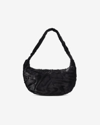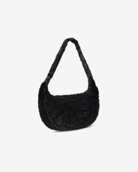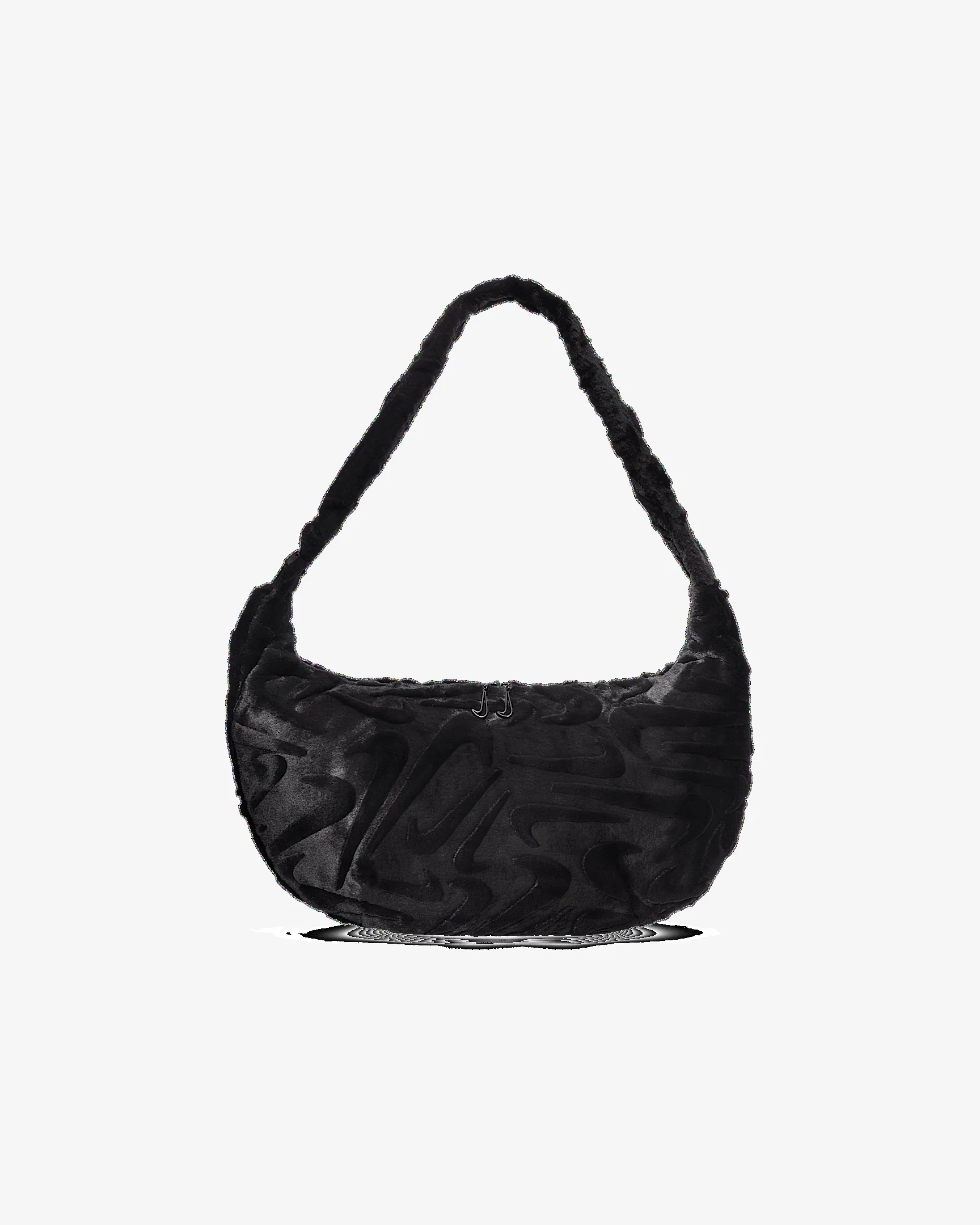A sleek silhouette pairs with trendy faux fur fabric for all your daily essentials. Carry it by hand or adjust the cinched strap to wear it as a sling or cross body bag. A small-item snap pocket inside helps keep your valuables organized. Product Details - 24"W x 12"H x 4"D - Faux fur: 100% polyester. Lining: 100% polyester. - Spot clean - Imported - Shown: Black/Black - Style: HQ7515-010