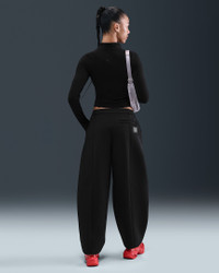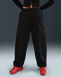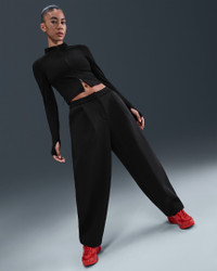 Suit up in these soft, midweight pants. Tailored details like an oversized pleat add dimension to the roomy fit for an elevated look. Product Details - Body: 50% modal/50% polyester. Pocket bags: 100% cotton. - Ribbing at waistband - Zipper and snap front closure - Articulated back leg seam - Pockets - Synthetic leather jock tag on right hip - Embroidered Swoosh logo on left hip - Machine wash - Imported - Shown: Black/Anthracite - Style: HV1964-010 SIZE & FIT Model is wearing size S and is 5′9″175cm Loose fit: roomy and relaxed Fl length: hits below ankle