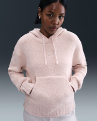 Luxurious comfort for every day—this hoodie is made from heavyweight boucle for an elevated and soft feel. Benefits - Cover yourself in luxurious boucle—our soft heavyweight knit that helps keep you warm and cozy. - Dropped shoulders and room through the body give you a loose fit. Product Details - 99% polyester/1% spandex - Drawstring - Self ribbing at hem and cuffs - Kangaroo pocket - Embroidered Swoosh logo - Machine wash - Imported - Shown: Silt Red/Silt Red - Style: HV2768-667 SIZE & FIT Model is wearing size S and is 5′7″170cm Loose fit: roomy and relaxed