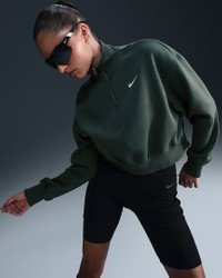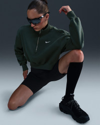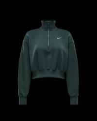 Grounded in style, comfort and versatility, meet our take on luxury loungewear. This 1/2-zip sweatshirt is cropped for a trend-right look, while taller ribbing at the hem, cuffs and collar adds structure to the overall fit. Made from midweight fleece, it's sure to be one of your new cold-weather favorites. Benefits - Our midweight brushed fleece feels extra soft on the inside and smooth on the outside, helping you stay cozy while keeping its structured shape. - Dropped shoulder seams and roomy sleeves provide a casual, relaxed look. Product Details - 1/2-length zipper - Elongated ribbing - Embroidered Swoosh logo - Body: 80% cotton/20% polyester. Rib: 97% cotton/3% spandex. - Machine wash - Imported - Shown: Vintage Green/Sail - Style: DQ5767-338