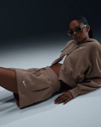 Grounded in style, comfort and versatility, meet our take on luxury loungewear. These loose-fitting shorts are made from midweight brushed fleece for a soft yet structured feel. And exaggerated details (like elongated ribbing and drawcord) ensure your look is anything but basic. Benefits - Our midweight brushed fleece feels extra soft on the inside and smooth on the outside, helping you stay cozy while keeping its structured shape. - High-rise waistband with drawcord gives you a snug fit. Product Details - Side pockets - Elongated ribbing - Embroidered Swoosh logo - Body: 80% cotton/20% polyester. Rib: 97% cotton/3% spandex. Pocket bag knuckle side: 100% cotton. - Machine wash - Imported - Shown: Mink Brown/Sail - Style: FD1409-233 SIZE & FIT Model is wearing size S and is 5′10″178cm Loose fit: roomy and relaxed Fits large; we recommend ordering a size down