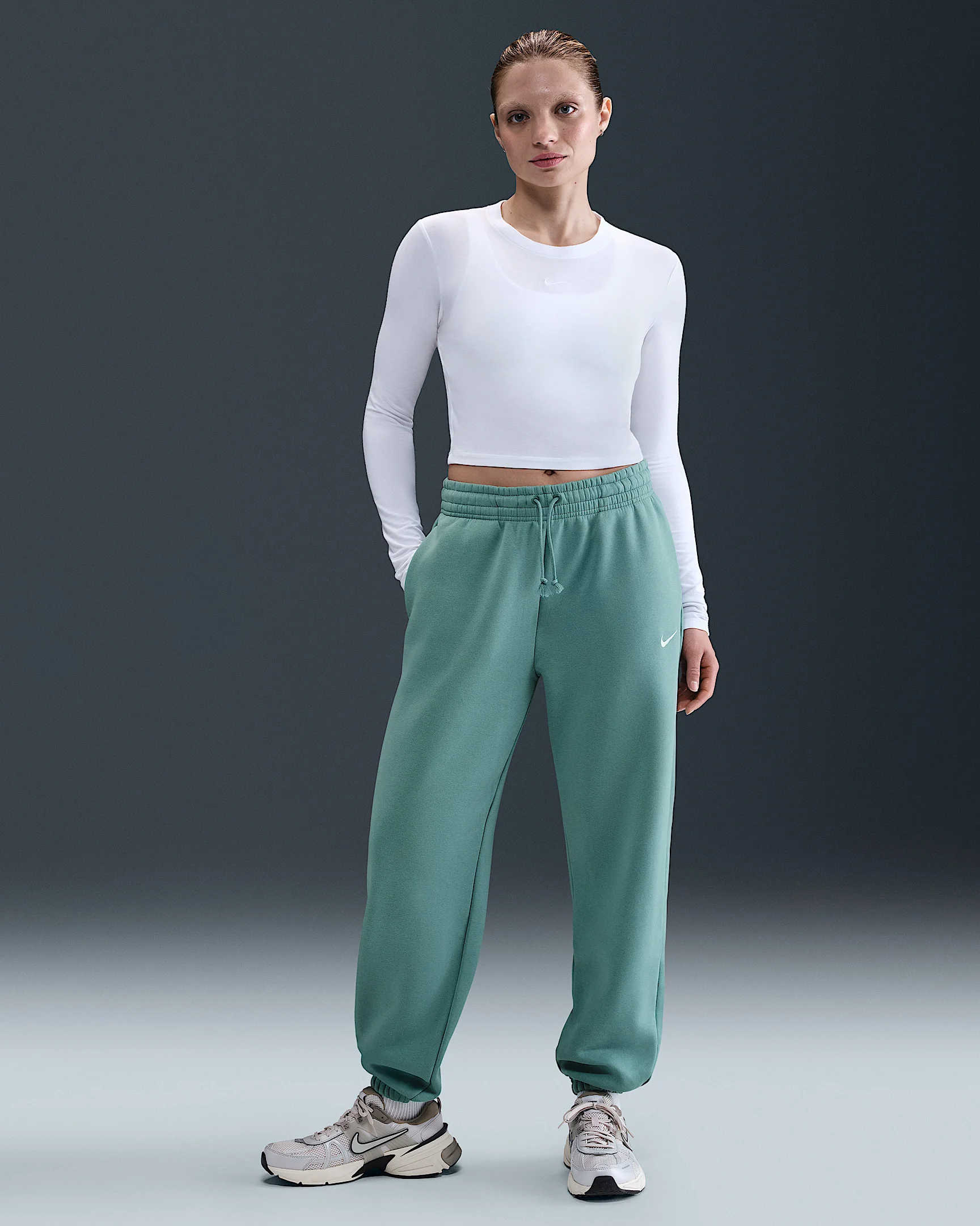 Grounded in style, comfort and versatility, meet our take on luxury loungewear. Whether you're running errands or rewatching your favorite show, these midweight fleece sweats feel extra soft on the inside to help keep you cozy. The oversized fit is intended to sit high on your hips for comfort and a stay-put feel. Benefits - Encased elastic waistband and drawstrings ensure a fit that feels just right. - Pockets provide quick storage for keys, phone and cold hands. Product Details - 80% cotton/20% polyester - Embroidered Swoosh logo on left leg - Machine wash - Imported - Shown: Cannon/Sail - Style: FZ5996-017 SIZE & FIT Model is wearing size S and is 5′10″178cm Oversized fit: exaggerated and spacious Fl length: hits below ankle