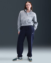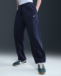 Grounded in style, comfort and versatility, meet our take on luxury loungewear. Whether you're running errands or rewatching your favorite show, these midweight fleece sweats feel extra soft on the inside to help keep you cozy. The oversized fit is intended to sit high on your hips for comfort and a stay-put feel. Benefits - Encased elastic waistband and drawstrings ensure a fit that feels just right. - Pockets provide quick storage for keys, phone and cold hands. Product Details - 80% cotton/20% polyester - Embroidered Swoosh logo on left leg - Machine wash - Imported - Shown: Midnight Navy/Sail - Style: FZ5996-410 SIZE & FIT Model is wearing size S and is 5′7″170cm Oversized fit: exaggerated and spacious Fl length: hits below ankle