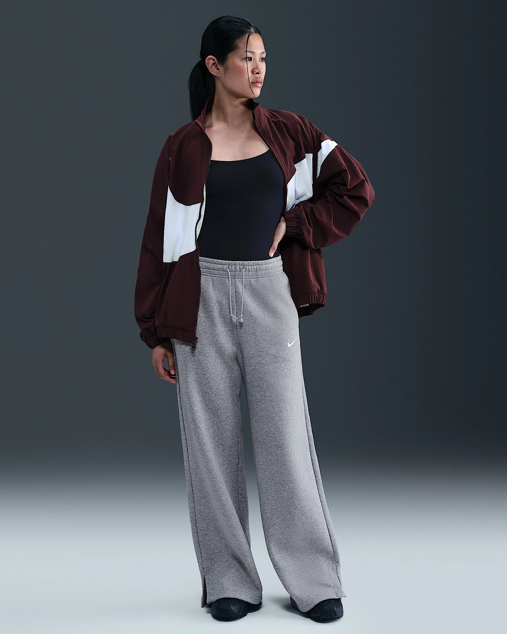 Made with midweight brushed fleece that feels extra soft on the inside and smooth on the outside, these wide-leg pants have an all-day cozy feel. Product Details - 80% cotton/20% polyester - Hand pockets - Side vents - Embroidered Swoosh logo on left thigh - Elastic waistband with drawcord - Machine wash - Imported - Shown: Dark Grey Heather/Sail - Style: IH1011-063 SIZE & FIT Standard fit: easy and traditional Fl length: hits below ankle