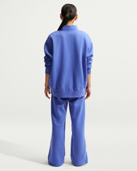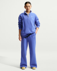 Made with midweight brushed fleece that feels extra soft on the inside and smooth on the outside, these wide-leg pants have an all-day cozy feel. Product Details - 80% cotton/20% polyester - Hand pockets - Side vents - Embroidered Swoosh logo on left thigh - Elastic waistband with drawcord - Machine wash - Imported - Shown: Light Medium Blue/Sail - Style: IH1011-460 SIZE & FIT Model is wearing size S and is 5′7″170cm Standard fit: easy and traditional Fl length: hits below ankle