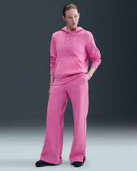 Made with midweight brushed fleece that feels extra soft on the inside and smooth on the outside, these wide-leg pants have an all-day cozy feel. Product Details - 80% cotton/20% polyester - Hand pockets - Side vents - Embroidered Swoosh logo on left thigh - Elastic waistband with drawcord - Machine wash - Imported - Shown: Playful Pink/Sail - Style: IH1011-675 SIZE & FIT Model is wearing size S and is 5′7″170cm Standard fit: easy and traditional Fl length: hits below ankle