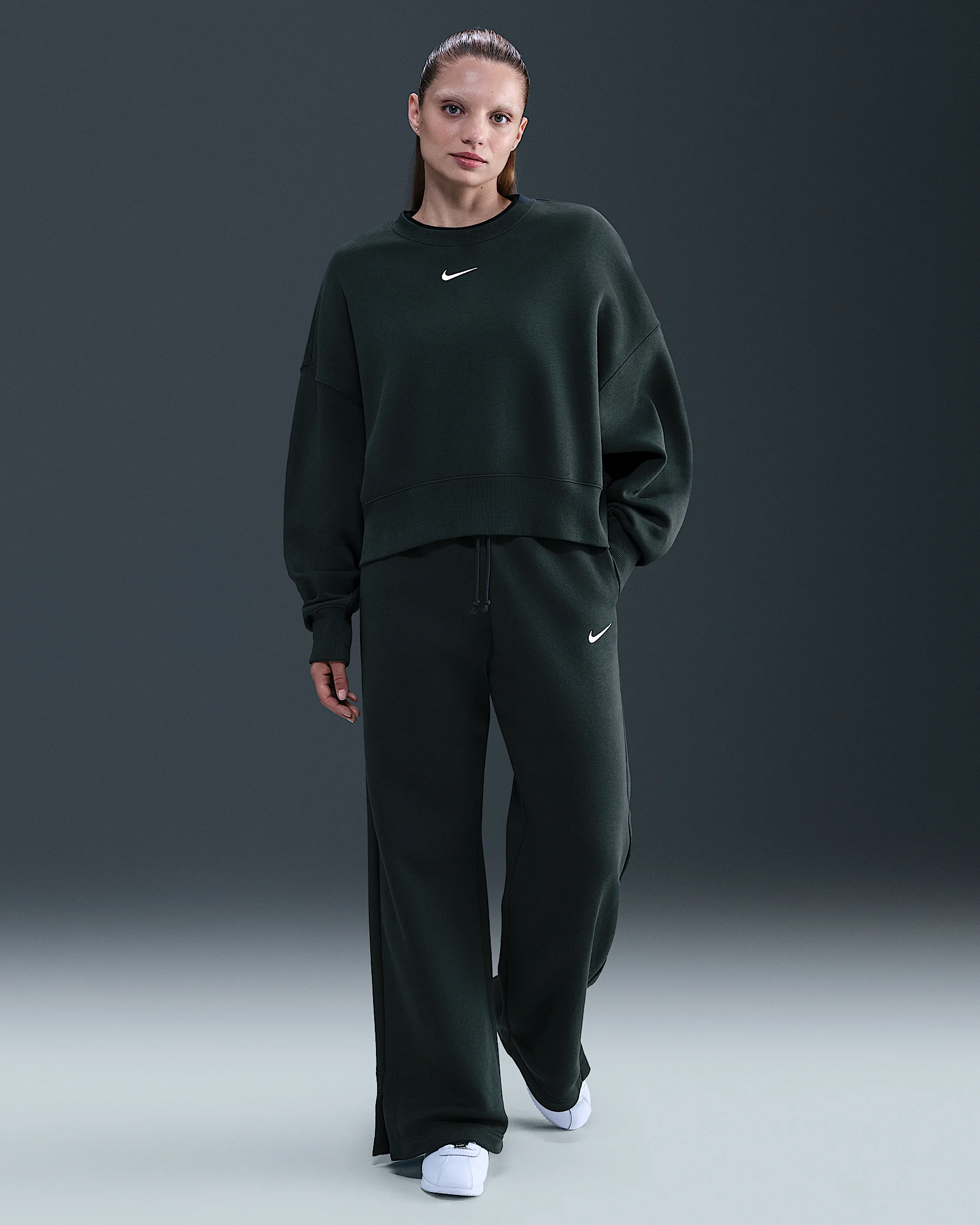 Made with midweight brushed fleece that feels extra soft on the inside and smooth on the outside, these wide-leg pants have an all-day cozy feel. Product Details - 80% cotton/20% polyester - Hand pockets - Side vents - Embroidered Swoosh logo on left thigh - Elastic waistband with drawcord - Machine wash - Imported - Shown: Seaweed/Sail - Style: IH1011-390 SIZE & FIT Model is wearing size S and is 5′10″178cm Standard fit: easy and traditional Fl length: hits below ankle