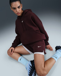 Extra soft on the inside and smooth on the outside, these cozy fleece shorts are elevated by exaggerated finishes like an elongated drawcord. Product Details - Body: 80% cotton/20% polyester. Pocket bag knuckle side: 100% cotton. - Embroidered Swoosh logo on left thigh - Hand pockets - Machine wash - Imported - Shown: Burgundy Crush/Sail - Style: IH2108-652 SIZE & FIT Model is wearing size S and is 5′11″180cm Standard fit: easy and traditional