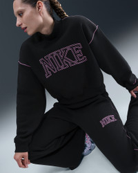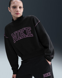 Made from midweight brushed fleece, this oversized sweatshirt has a soft and structured feel. Contrast stitching and a ribbed mock-neck collar give you a spin on a classic style. Product Details - Body: 80% cotton/20% polyester. Rib: 96% cotton/4% spandex - Ribbed cuffs, collar and hem - Double outline embroidered Nike - Oversized fit - Machine wash - Imported - Shown: Black - Style: IM7490-010 SIZE & FIT Model is wearing size S and is 5′10″178cm Oversized fit: exaggerated and spacious