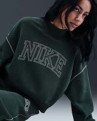 Made from midweight brushed fleece, this oversized sweatshirt has a soft and structured feel. Contrast stitching and a ribbed mock-neck collar give you a spin on a classic style. Product Details - Body: 80% cotton/20% polyester. Rib: 96% cotton/4% spandex - Ribbed cuffs, collar and hem - Double outline embroidered Nike - Oversized fit - Machine wash - Imported - Shown: Seaweed - Style: IM7490-390 SIZE & FIT Model is wearing size S and is 5′7″170cm Oversized fit: exaggerated and spacious